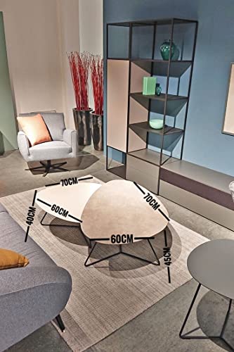 LION HOME - طاولة قهوة - قطعتان - ابيض × بيج، خشب معدن