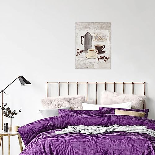 KMNOVO - لوحة فنية جدارية بطبعة فنجان قهوة وحبوب قهوة متناثرة لديكور المطبخ الريفي، لوحة فنية عصرية بإطار للمطبخ وغرفة الطعام والمقهى والمكتب، مقاس 30.5 سم × 40.6 سم