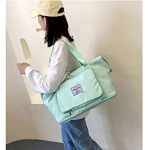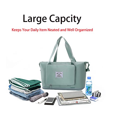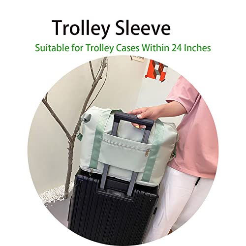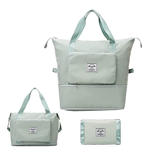 Cokosoxo - شنطة دفل للسفر قابلة للطي للنساء والرجال يد توت كبيرة رياضية للتوسيع مع جيب ترولي السعة ومناسبة للحمل على الطائرة والمبيت ليلة واحدة أخضر قماش