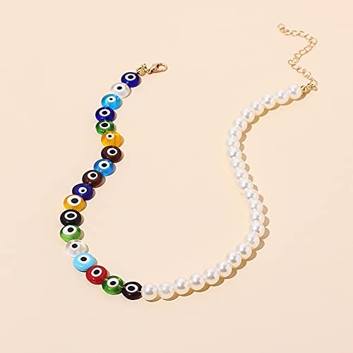 COLORFUL BLING - قلادة شوكر مزينة باللؤلؤ والعيون الزرقاء من الخرز البوهيمي الملون مصنوعة يدويا سلسلة مكتنزة صيفية كورية عصرية Y2K مجوهرات للنساء المراهقات والفتيات معدن غير معروف