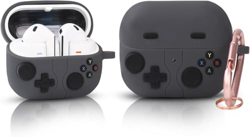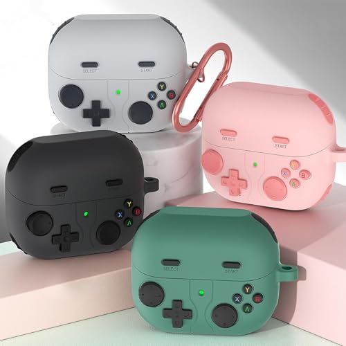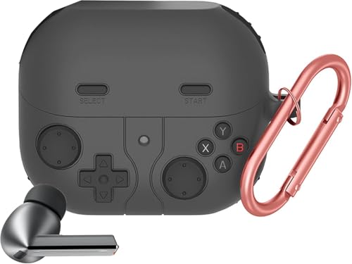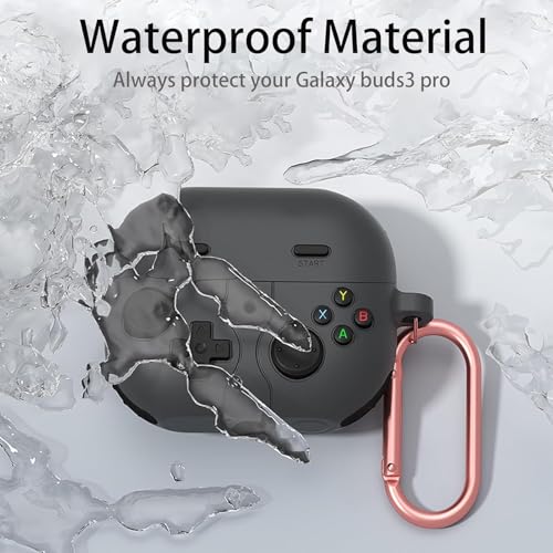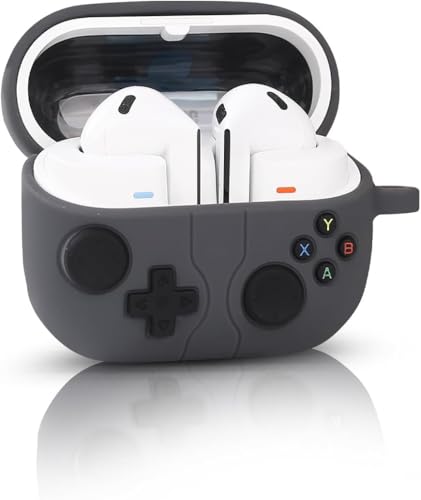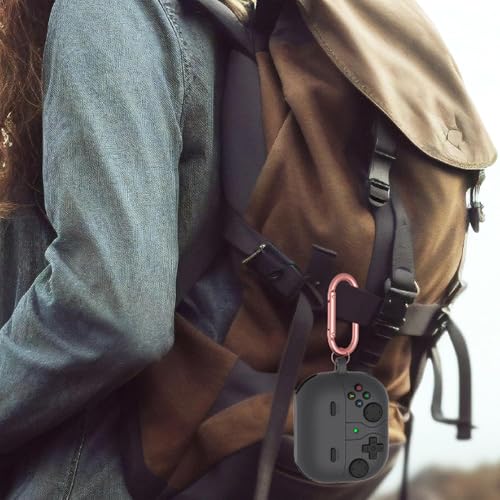 ELMO3EZZ - حافظة متوافقة مع جالكسي بادز 3 برو، حافظة بتصميم وحدة تحكم العاب الفيديو الرقمية المحمولة باليد مع سلسلة مفاتيح، واقي من السيليكون المتين متوافق مع سماعات جالاكسي بادز 3 وبودز 3 برو وبودز 3 برو (رمادي