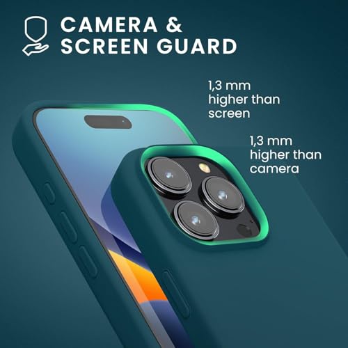 ELMO3EZZ - جراب متوافق مع موبايل ايفون 16 برو ماكس، سيليكون سائل فاخر، غطاء واقي لكامل الجسم مقاوم للصدمات، نحيف ببطانة ناعمة مضادة للخدش، 6.9 بوصة (بترولي غير لامع)