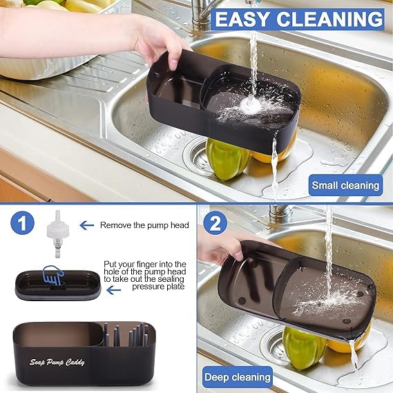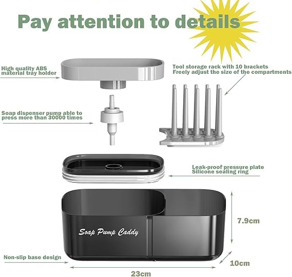 - ✅ (تصميم متعدد الاستخدامات) منظم صابون الأطباق الكامل مع فتحات تصريف لتجنب التجمعات البكتيرية وسهل الاستخدام والتنظيم في المطبخ والحفاظ عليه نظيفًا ومنظمًا.