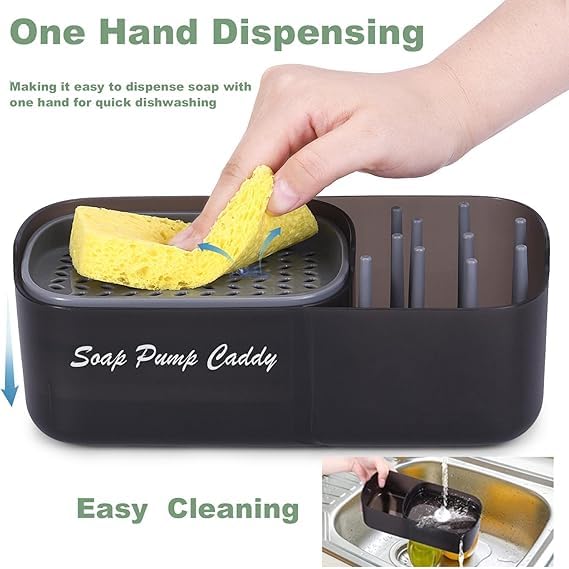 - ✅ (تصميم مبتكر موفر للمساحة) يتميز هذا المنظف بتنظيم مثالي للأدوات مع الإسفنج والفرشاة والليفة، مع فتحات تصريف المياه وقاعدة مطاطية مانعة للانزلاق للحفاظ على مطبخك نظيفًا ومنظمًا.