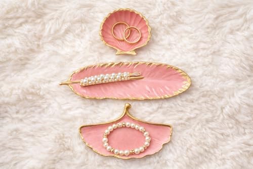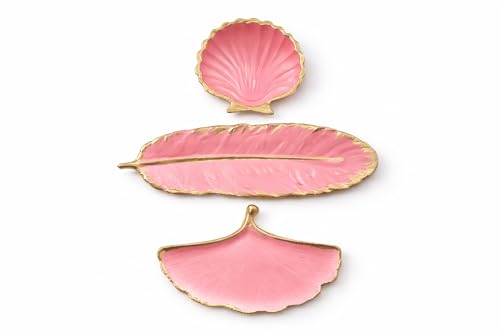 Generic - طقم ديكور كونكريت أنيق مكون من ريشة وصدفة وهواية – لون بينك فاتح بحواف ذهبية