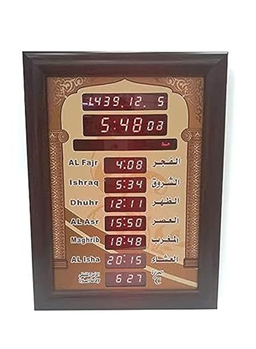 - هذا المنتج عبارة عن ساعة حائط رقمية إسلامية. تعرض الساعة الوقت والتاريخ وخمس أوقات صلاة. كما أنه يعرض درجة الحرارة الحالية.