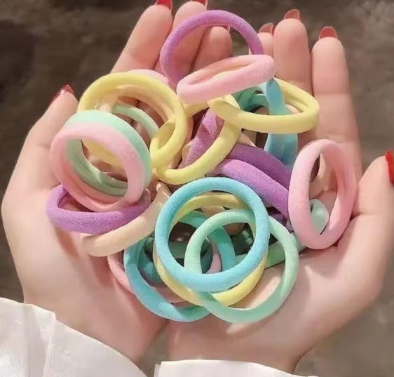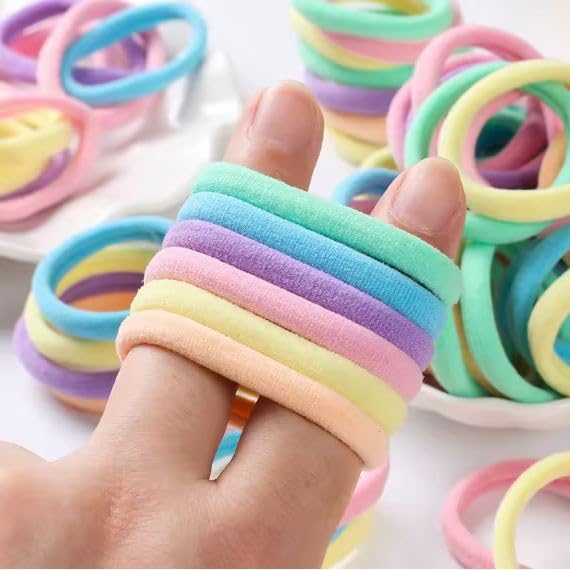 Generic - طقم توك للشعر كوني باني بألوان الباستيل مع شنطة تخزين أطواق مطاطية ناعمة متعددة الألوان متوسطة الحجم، 100 قطعة