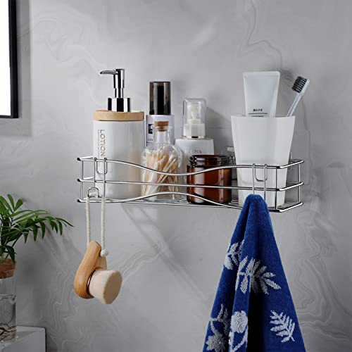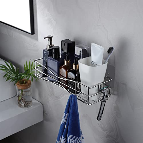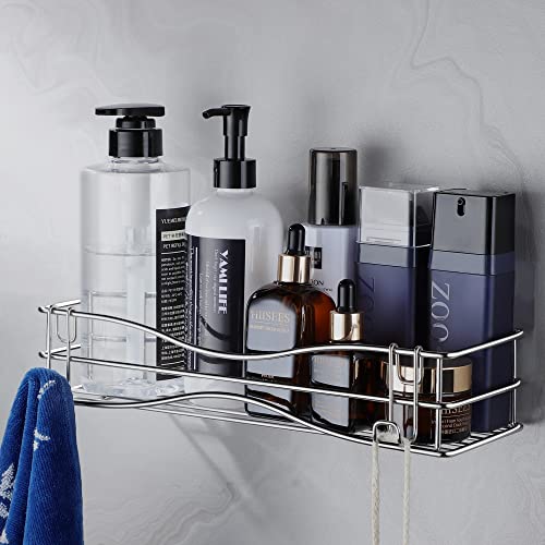 Cooeco - حامل دش للشامبو من كويكو مع خطافين - رف حمام لاصق الستانلس ستيل SUS 304 وغسول الجسم