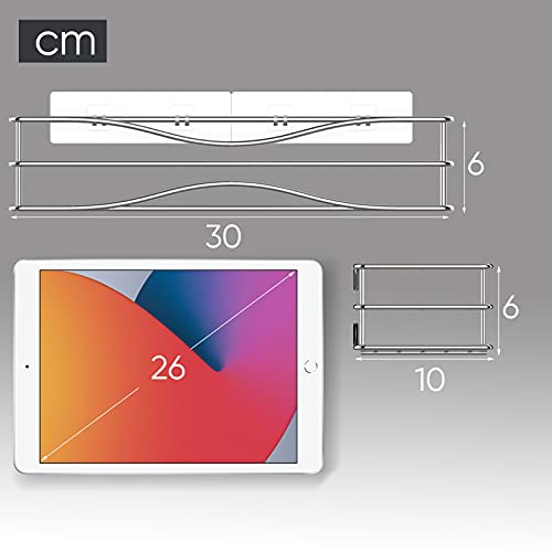 - الأبعاد والعبوات: صندوق تخزين للحمام والحمام: 30 × 10 × 6 سم، 1 واحد. الخطافات: قطعتان. وسادة لاصقة نانو: 15 × 8 سم, قطعتان.
