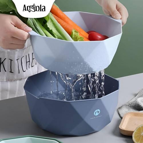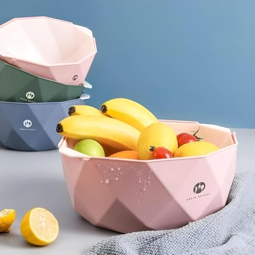 Generic - صفاية للمطبخ - صفاية 2 في 1 متعددة الاستخدامات مع أجزاء قابلة للتعديل، مثالية لشطف الأرز والمكرونة والخضروات والفواكه، تصميم مريح لسهولة الاستخدام مع ألوان زاهية (أخضر)