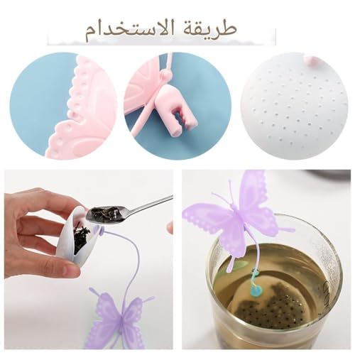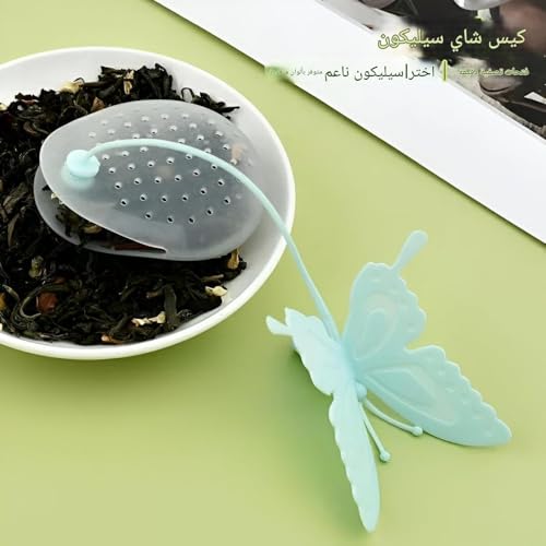 Generic - اداة طبخ - مصفاة شاي على شكل فراشة من السيليكون صديقة للبيئة للاعشاب والتوابل والعطريات، ملونة وقابلة لاعادة الاستخدام، سهلة التنظيف، تقلل من النفايات، مثالية لتحضير الطعام بشكل امن