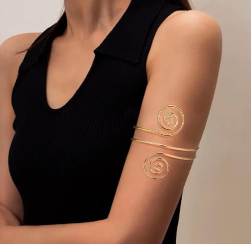 Generic - سوار نحاسي عريض، تصميم حلزوني، لون ذهبي