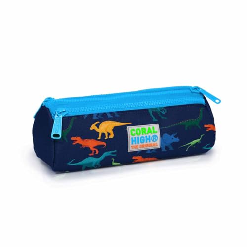 Coral High - مقلمة بثلاثة جيوب للأطفال من كورال هاي - بنقشة ديناصور ولون أزرق كحلي، بولي فينيل كلوريد (PVC)