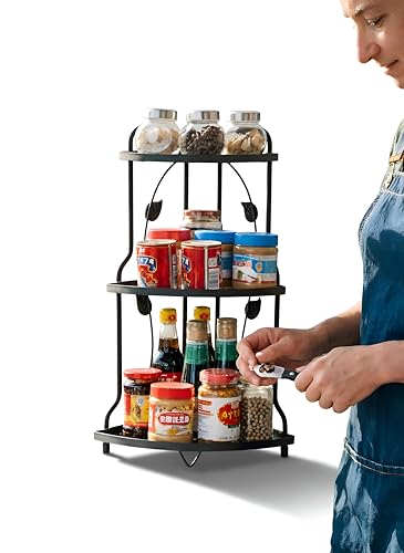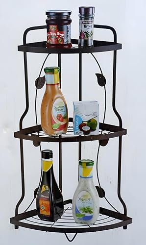 Generic - حامل منظم للزوايا - رف معدني مقاوم للصدأ مع 3 طبقات للتخزين في المطبخ والحمام، تصميم متين وموفر للمساحة