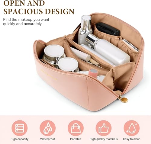 Generic - حقيبة مستحضرات التجميل - حقيبة مكياج واسعة للسفر مثالية لحمل الضروريات في أي مكان (بينك)