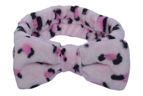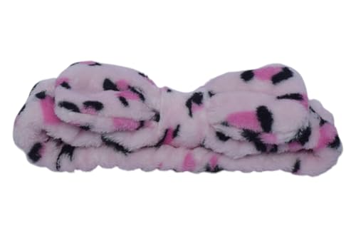 Generic - طوق شعر قطني بنقشة جلد فهد على شكل فيونكة، وردي