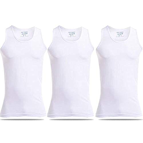 Cottonil - فانلة داخلية مخططة طقم من 3 فانلات بدون اكمام للرجال قطونيل - قطن 100%, أبيض, XL