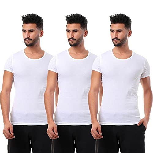Cottonil - طقم فانلات داخلية قطن بنصف كم للرجال من امبراطور لون ابيض مجموعة ثلاث قطع