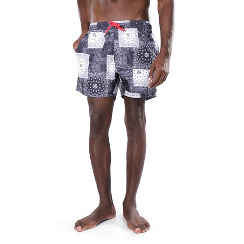 COUP - شورت سباحة منقوش من البوليستر المعاد تدويره للرجال من كوب، لون أسود، مقاس كبير L، موديل 2315900671012