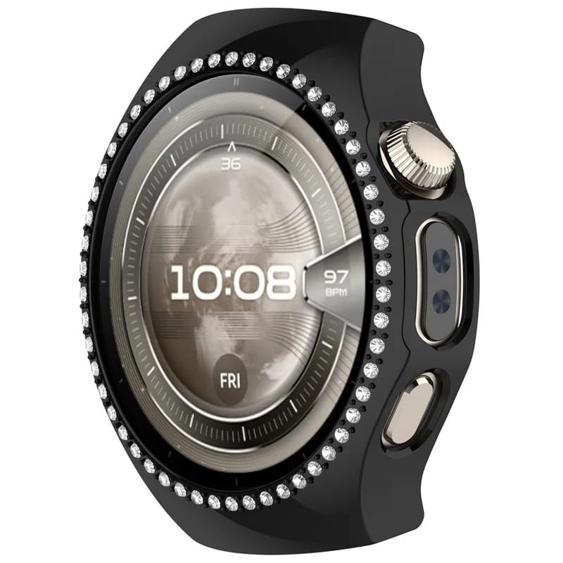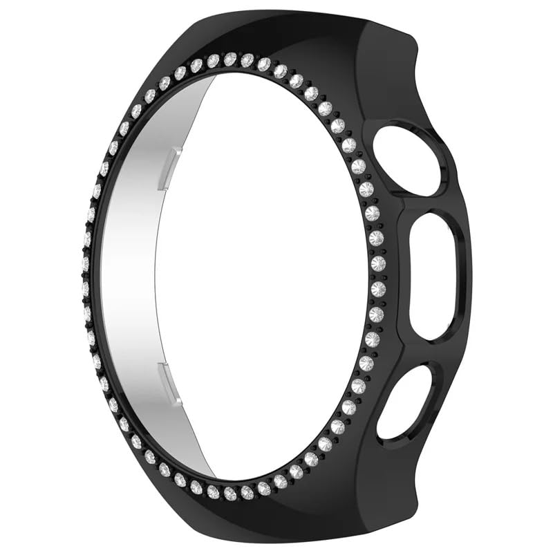 ELMO3EZZ - جراب لساعة هواوي 5 مقاس 42 ملم مزين باحجار الراين بتصميم مجوف مطلي بالكهرباء من البولي كربونات (اسود)