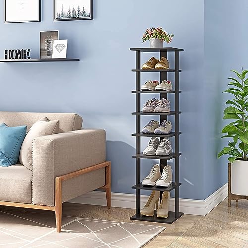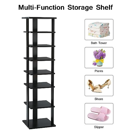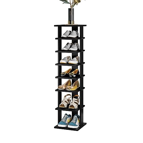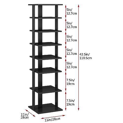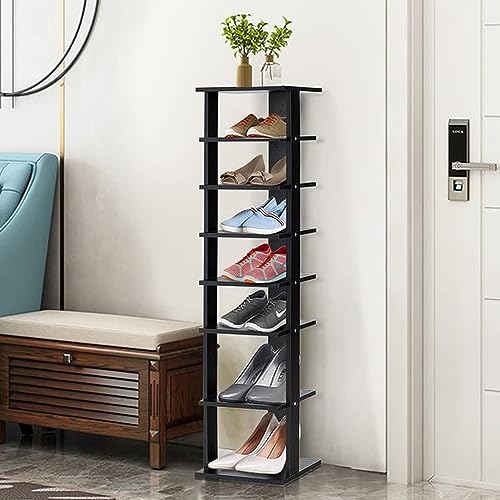 COZYFUN - رف احذية ضيق من كوزي فان خزانة تخزين عمودية خشبية 7 طبقات طويل ورفيع للخزانة الضيقة وغرفة النوم والممر والمدخل اسود