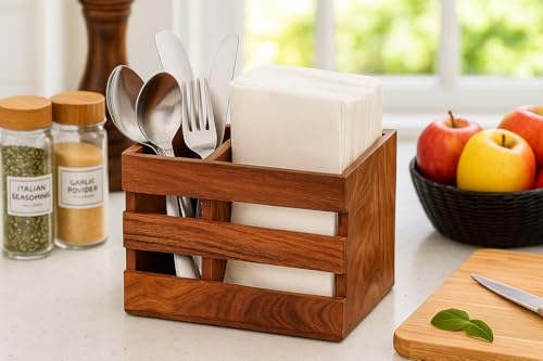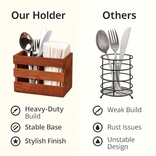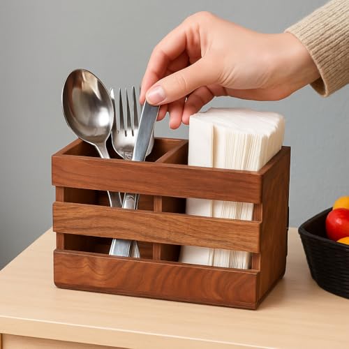 - تصميم ريفي أنيق: أضف لمسة من أناقة منزل المزرعة إلى ديكور مطبخك مع علبة الأدوات الخشبية هذه.