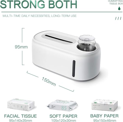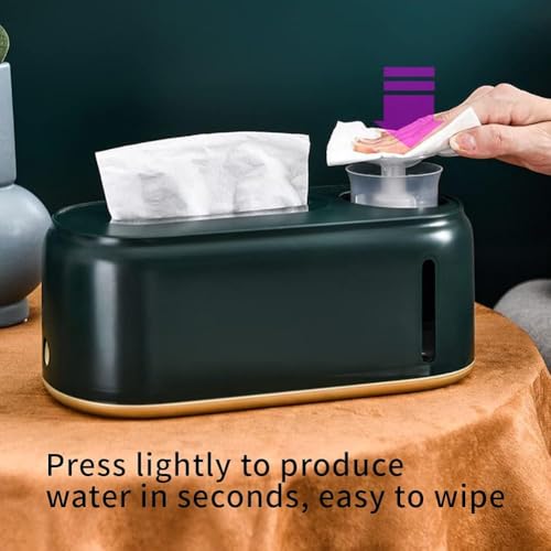 - 💧 تحويل فوري للمناديل الجافة إلى مناديل مبللة: بفضل المضخة الصغيرة وزجاجة المياه المدمجة، يمكنك ترطيب المناديل في ثوانٍ لاستخدامها في التنظيف، إزالة المكياج أو مسح الأيدي. هذه الميزة تجعل العلبة متعددة الاستخدامات وسهلة التشغيل بلمسة زر واحدة فقط.
