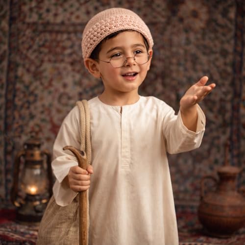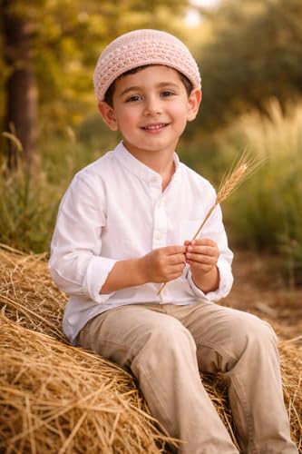 Generic - قبعة كروشيه صغيرة للاطفال، لون بينك خوخي بنمط محبوك يدويا، قبعة شتوية ناعمة ودافئة