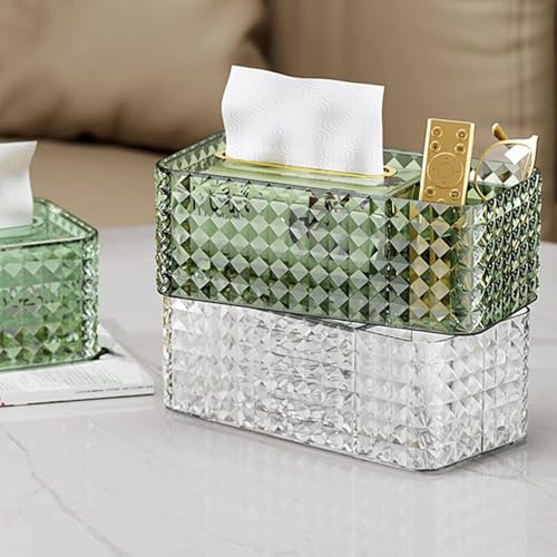 Generic - علبة مناديل أكريليك كريستالية – منظم بثلاثة أقسام مع حامل مناديل بنظام رفع نابضي لتخزين جهاز التحكم عن بعد وأدوات المكياج والأغراض الأساسية (أخضر داكن (قطعة واحدة))