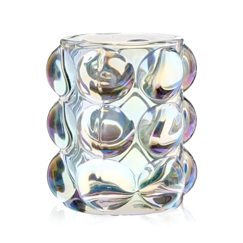 Generic - وعاء زجاجي بتصميم فقاعات كريستالية متعدد الاستخدامات، كوبا لفرش المكياج أو حاملا للأقلام أو برطمان تخزين متعدد الوظائف أو قالبا للشموع، بتصميم شفاف أنيق ومضيء