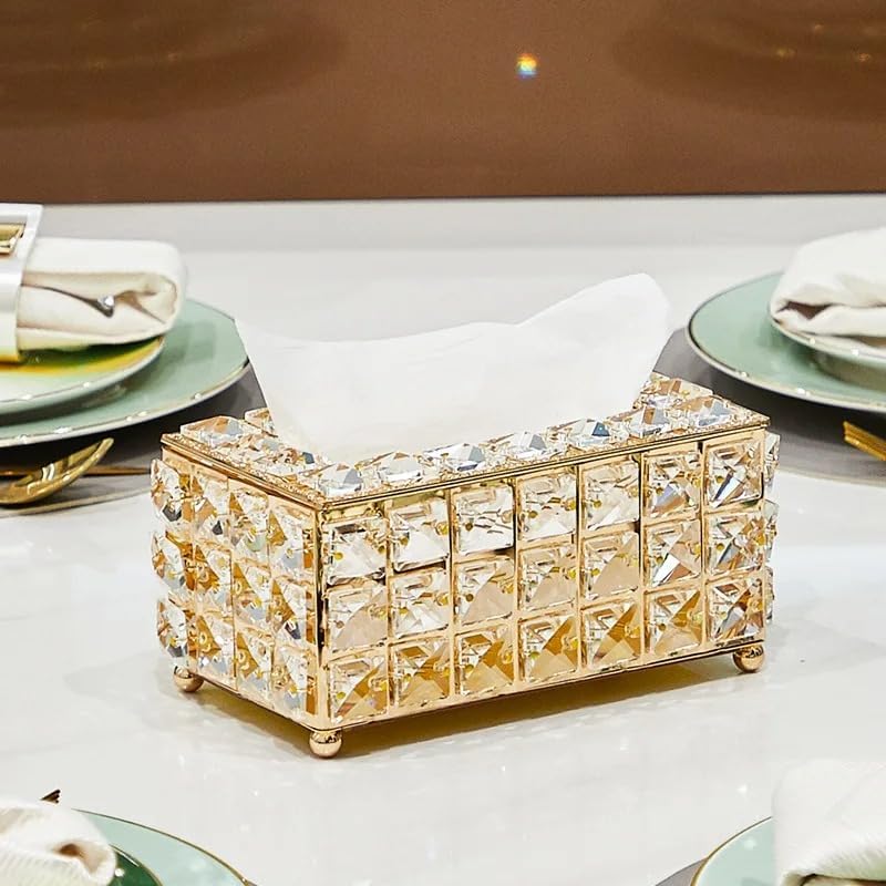 Generic - علبة توزيع مناديل كريستالية معدنية