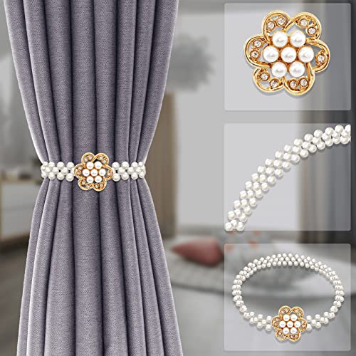 LLPMutu - اربطة ستائر بتصميم نابض لؤلؤي كريستالي، اربطة ستائر بتصميم منحوت، حامل ستائر خلفي للستائر، رقيقة او سميكة، خطافات ستائر عصرية للديكور (زهور)