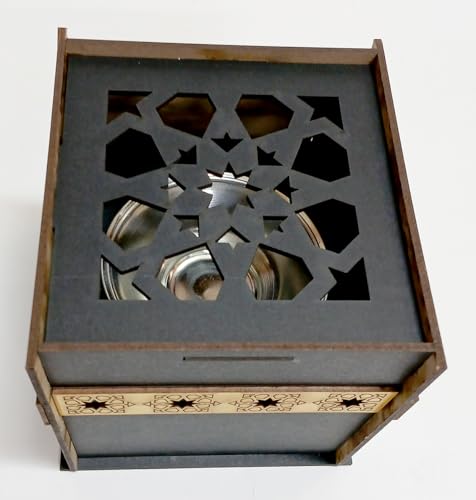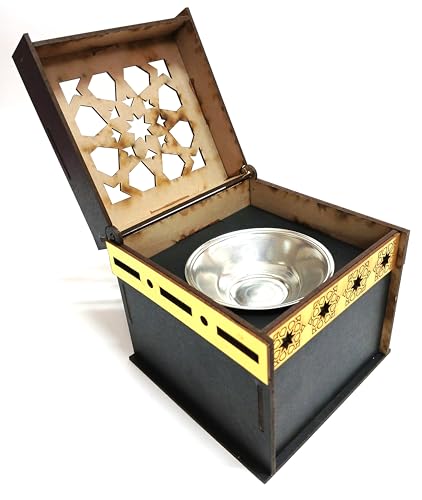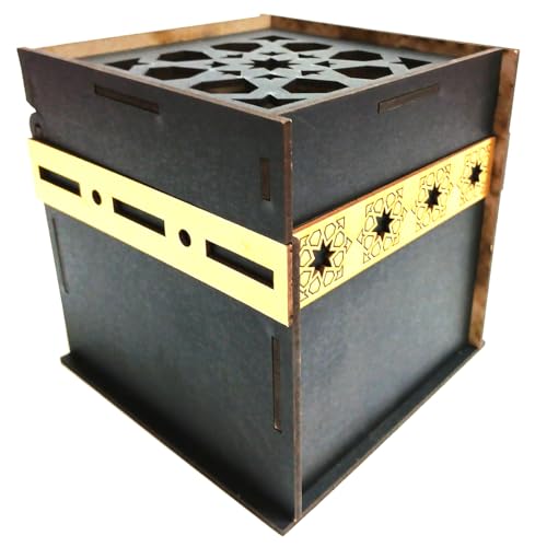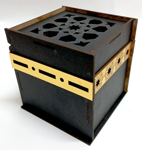 Generic - مبخرة مكعبة الشكل تقليد للكعبة تصميم ديكوري مزخرف خشب شكل مكعب لون اسود و ذهبي