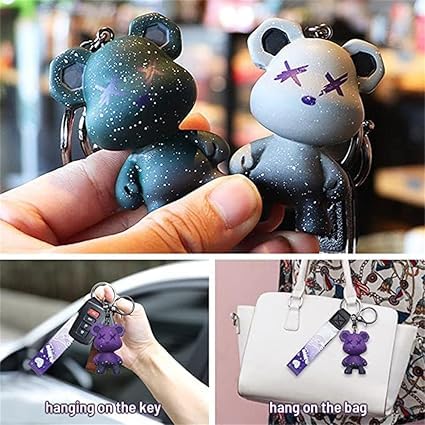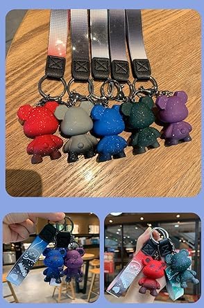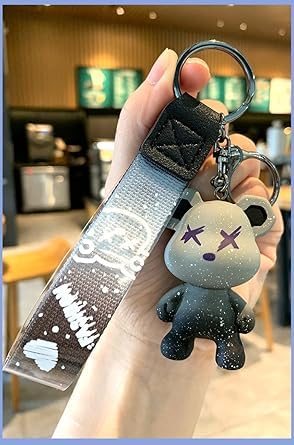 fashion mania - سلسلة مفاتيح على شكل دب لطيف، حلقة مفاتيح على شكل دب كرتوني، سوار معصم، مناسبة لمفتاح السيارة وشنطة الظهر