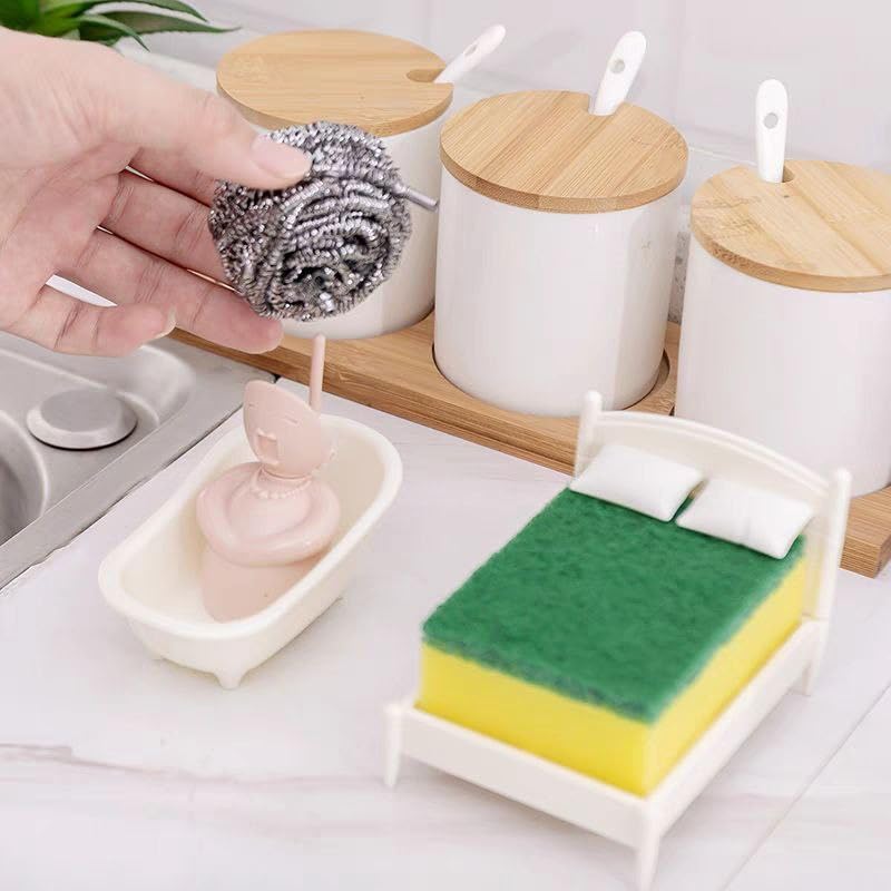 - تصميم مبتكر على شكل سرير يجعل من حامل الصبانه والسفنجه قطعة ديكور جميلة في المنزل.