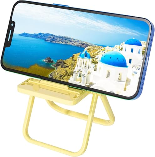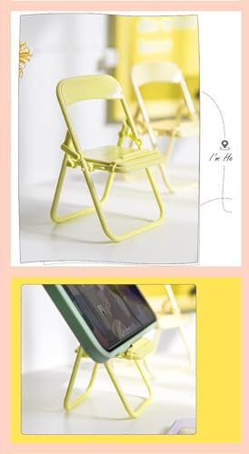 Generic - حامل موبايل قابل للطي والتعديل بتصميم كرسي ملون لطيف الموبايل دعامة للمكتب عالمي متوافق مع اي جهاز - أصفر بلاستيك