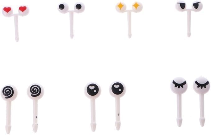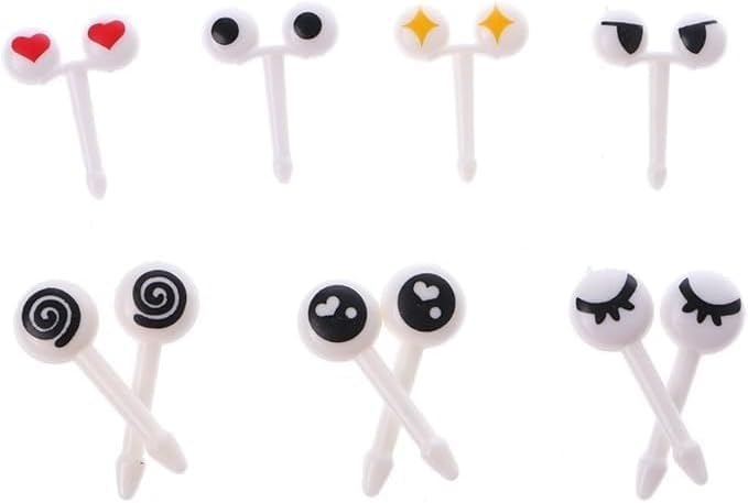 Spaceshoop - عيدان طعام صغيرة بتصميم عين لطيفة، شوك للأطفال، لانش بوكس بينتو، أدوات مائدة ممتازة ومتينة ومريحة (10 قطع)