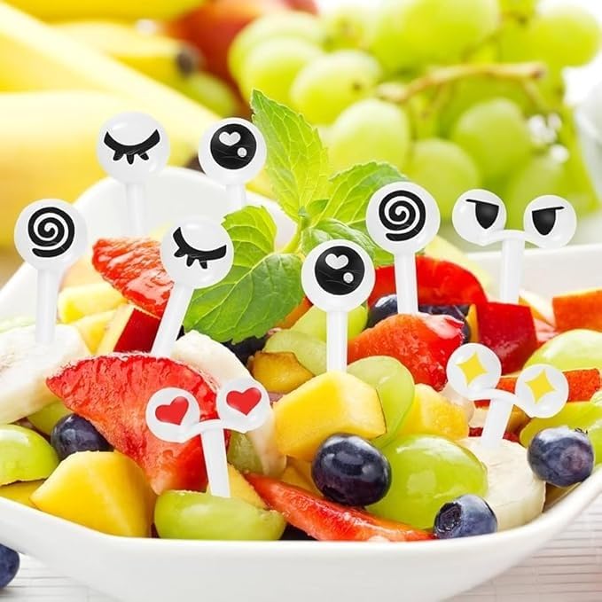 - بسيطة وعملية: يعتمد أعواد الأسنان على تصميم شوكة غير قابلة للانزلاق مع نتوء في الطرف الأمامي يمنع الانزلاق، مما يسهل إدخالها في الفاكهة. كما أن المقبض بتصميم كرتوني لطيف يجعل الطعام يبدو أكثر شهية ويجذب انتباه الأطفال، مما يزيد من شهيتهم ويشجعهم على الاستمتاع بالفواكه والوجبات الخفيفة أو غيرها من الأطعمة.