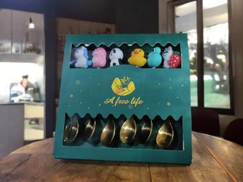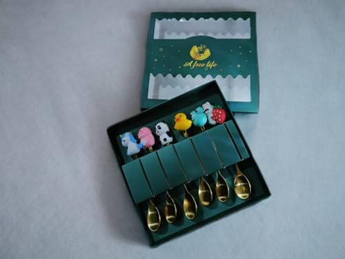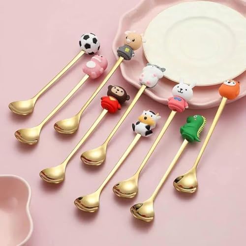 Generic - طقم معالق فاكهة وحلويات بتصميم لطيف، معالق تقليب للقهوة والحلويات من الفولاذ المقاوم للصدأ، (مقاس 16 سم، لون ذهبي)