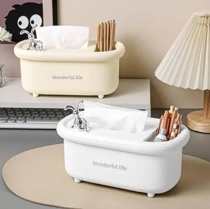 - تصميم أرنب رائع: صندوق مناديل لطيف على شكل حوض استحمام مع زخرفة أرنب تضيف لمسة مرحة وأنيقة إلى ديكور منزلك أو مكتبك.