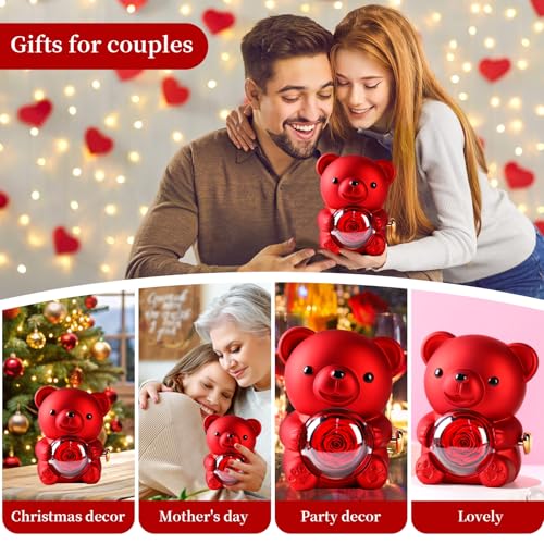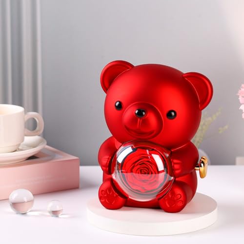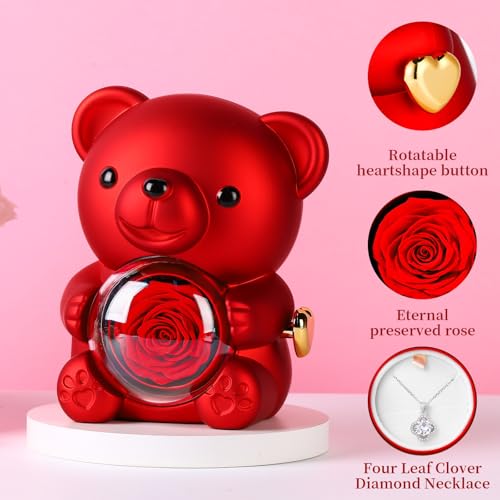 kitims - دمية دب لطيفة مع وردة محفوظة - هدية ورود رومانسية محفوظة لها، زهور محفوظة فريدة من نوعها في الزجاج، زهور انيقة للابد للنساء والام والزوجة في عيد الحب وعيد الام وعيد الميلاد