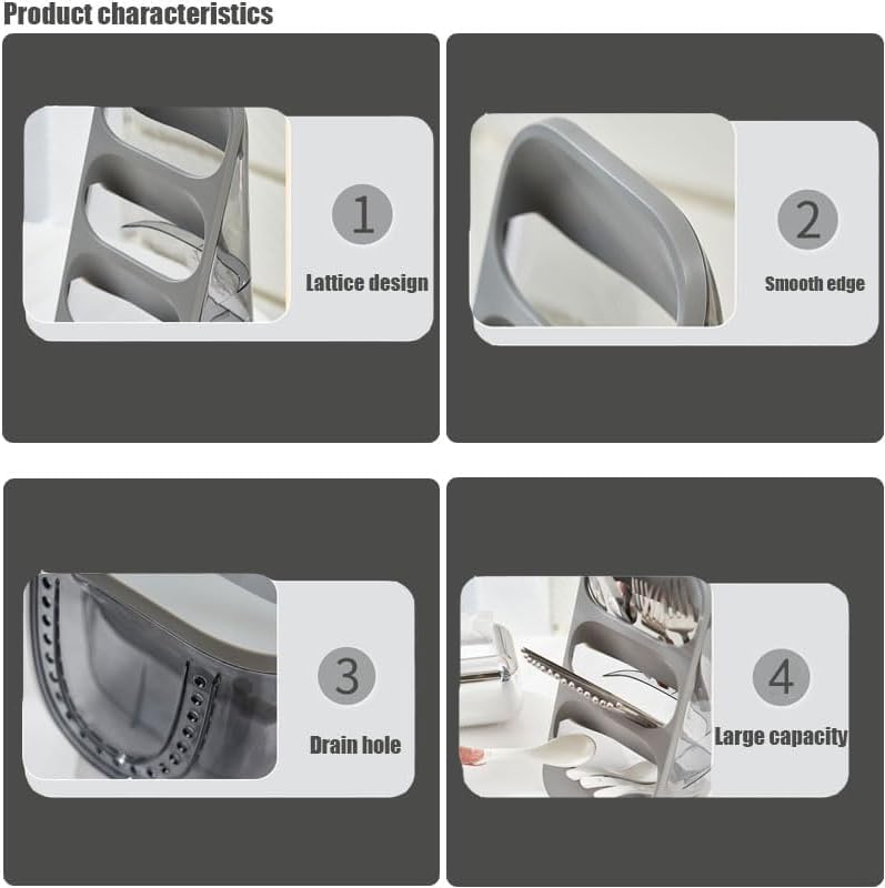 Generic - حامل و صفاية لادوات تناول الطعام و الملاعق - حاوية تخزين و تنظيم بلاستيكية مقاومة للماء مع فتحات تصريف المياه، رف تخزين متعدد الاستخدامات 20X10X5CM