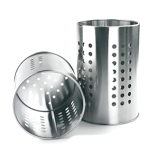 Generic - حامل ادوات تناول الطعام - رف تجفيف انيق من الستانلس ستيل مع ميزات تصريف للمطبخ المرتب، مثالي لتنظيم الادوات في المنزل او العمل. (قطعتين)