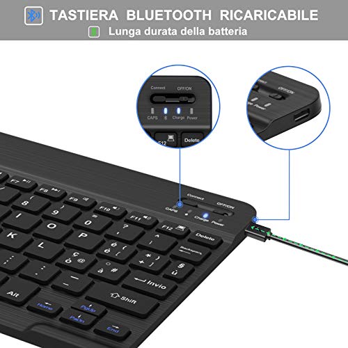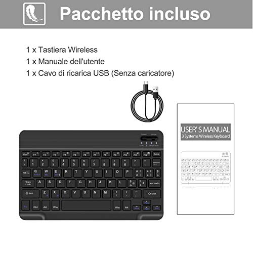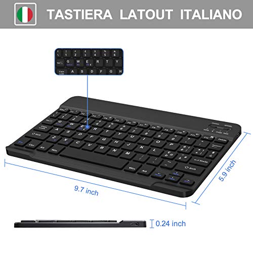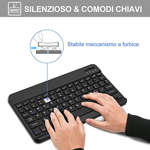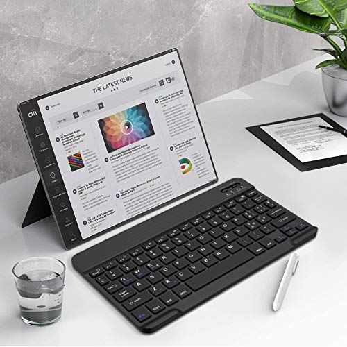 D DINGRICH - لوحة مفاتيح بلوتوث لاسلكية لأجهزة اي باد/تابلت سامسونج /هواوي/لينوفو، كيبورد بتصميم رفيع للغاية قابلة لإعادة الشحن، كيبورد نوع كويرتي متوافقة مع أنظمة IOS/ويندوز/اندرويد من دي دينجريتش، أسود