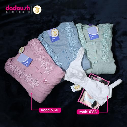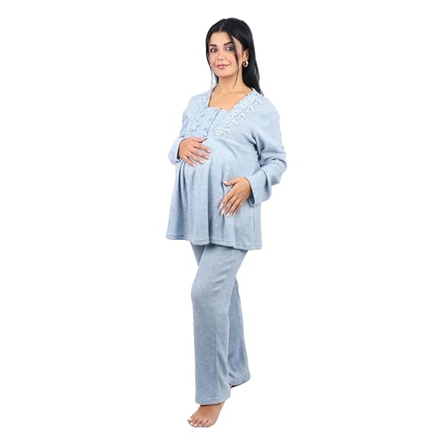 Dadoush - بيجامة حمل شتوية مطرزة قطن من دعدوش - بيجامة للنساء - قصة خاصة مناسبة للنساء الحوامل - طقم من قطعتين مع بلوزة بزراير- ملابس منزلية مريحة للنساء