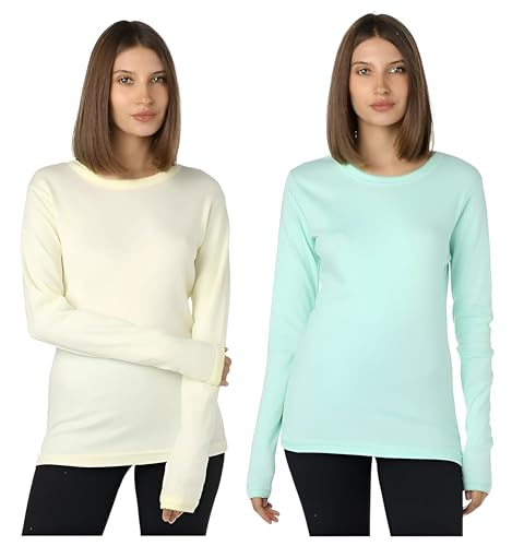 Dahab - Dahab Womens Set Of 2 Pieces Long Sleeves Undershirt Round Neck Base Layer Top (pack of 2)