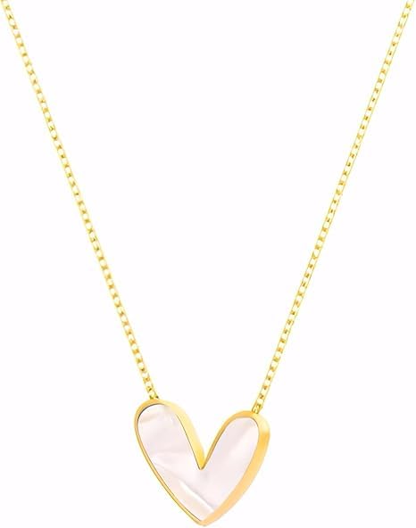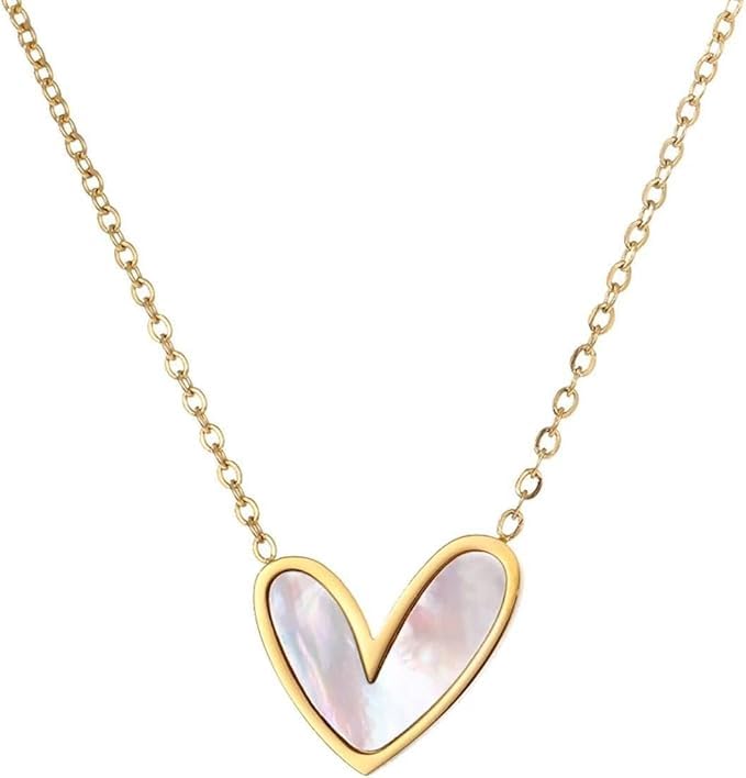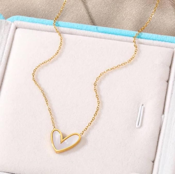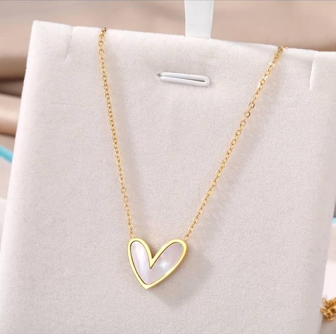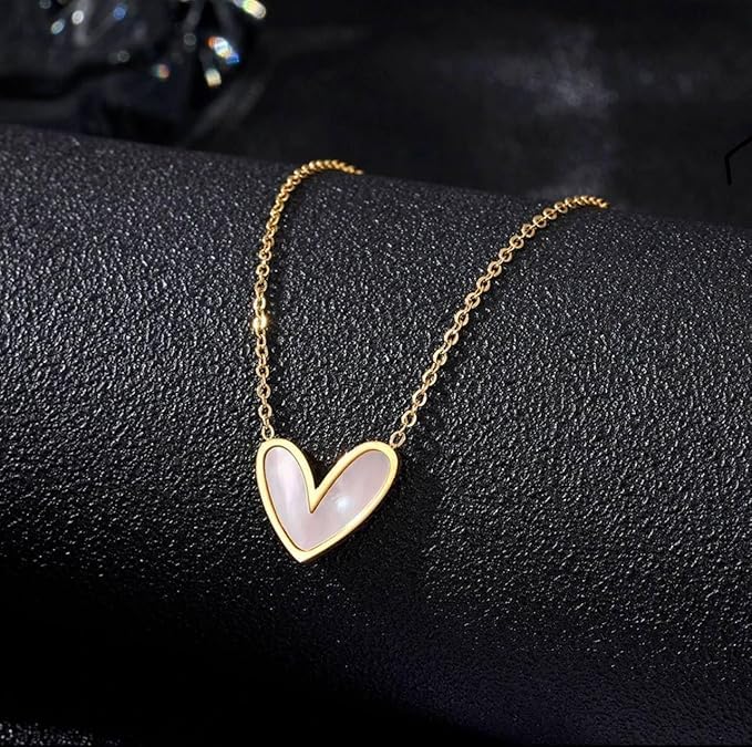 Generic - عقد بقلادة ذهبية انيقة على شكل قلب، مينا ابيض، تصميم سلسلة بحلقات (ابيض)