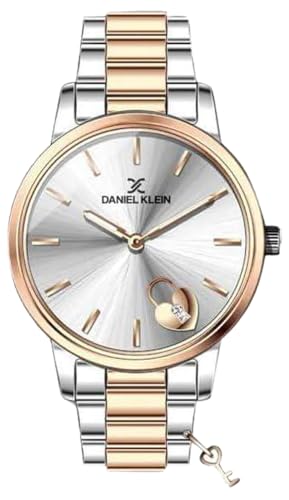 Daniel Klein - ساعة أنالوج بعقارب وسوار وقلادة للنساء من DK.1.13174-4 مقاس 34 ملم ستيل - ذهبي وردي - فضي دانيال كلاين