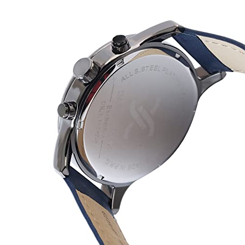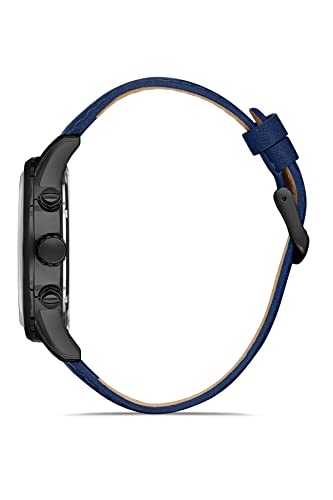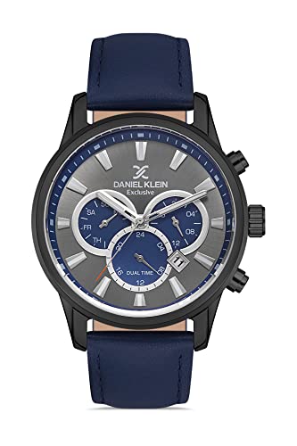 Daniel Klein - ساعة يد بسوار من الجلد أسود وأزرق غامق للرجال من دانيال كلاين DK.1.13137-6، انالوج