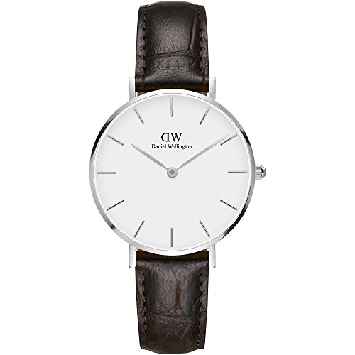 Daniel Wellington - ساعة كلاسيك بيتيت يورك للنساء من دانيال ولينغتون، فضي 32 ملم- DW00100188, أبيض، تناظري